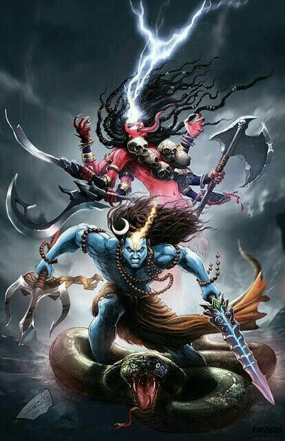 I chose to end with the Vayu Purana’s accounting of VeeraBhadra and BhadraKali’s all-subjugating deployment there, because it is both the proper resolution to the outrageous egregities of Daksha – as well as, in the veer-y same occurrence, the indescribable glory of Their Unity. It is a miniature mythic-recurrence my placing of it heer, as it is, in effect, a re-unification all its own, and in direct homa-ge to the august date. We have considered Them many times in the coursing span of this piece somewhat separately; but to be a true MahaShivRatri tribute, it was only rite that They be properly considered Together. The Be-All and the End-All of both this piece, and ultimately of All Things.