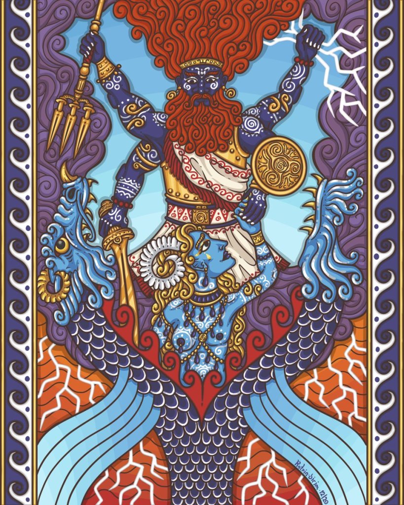 ‘Bhava’ is correlated with Parjanya in the Shatapatha Brahmana iteration of the rite, per the text due to the fact that all ‘beings’ (‘Bhava’) are nourished or nurtured by the quality of the Rainfall and are given rise via the investiture into the soil and sphere of the supernal essence of life from the Sky Father via this Form. [For more detail upon this specific understanding, please consult the portion of ‘The Queen Of Serpents – The Serpentine Figure Of The Indo-European Earth Mother’ looking at the Sky Father’s involvement in the relevant fertility metaphysics and associated rites; and, of course, ‘Swear By The Sea, Swear By The Stars, Swear By The Sky – On The Mytholinguistics Of Varuna Neptune Ouranos’] This is, needless to say, exactly the role and effective position that our modelling had predicted for Parjanya based on our comparative reconstructive theology.