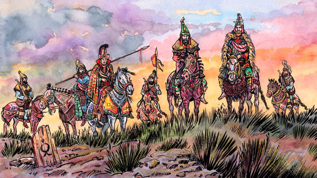 The point is – ‘Sarasara’ fits rather well for what a somewhat later Hindu perception of ‘Barbarian’ would entail. A ‘Nomad’ moving with great speed and force; and interestingly, a term which would seemingly connote almost the opposite of what we more usually seem to expect for an array of ‘Barbarian’ / ‘Other’ terminology, as discussed in my previous piece upon this subject. What I mean by this is that given the utility of ‘Sara’ in Sanskrit to refer to a flow of speech – a ‘full flight’ of elocution, indeed (c.f. ‘Sara’ of ‘Saraswati’ : सर of सरस्वती) – ‘Sarasara’ as a doubled formulation would seem to suggest a diametric antithesis to the idea of ‘halting’, ‘jabbering’, and ponderously incomprehensible ‘baah-‘ing speech of the ‘Barbarian. Or maybe these Sarasaras simply happened to talk really fast. And produce voluminous torrents of words at a time.