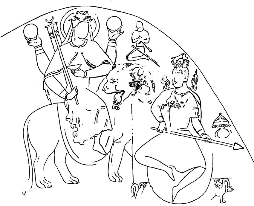 And, looking upon it – without going into further detail as to the relevant iconography … a spear-wielding figure situated next to the lion-mounted Goddess, well, in Hindu terms we should consider the identification obvious.
