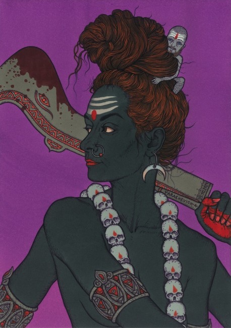 And so, therefore we have beautiful art of Kali wielding a fine Ramdao – the famously distinctive curved and eyed blade utilized in the practice of Bali, Sacrifice.