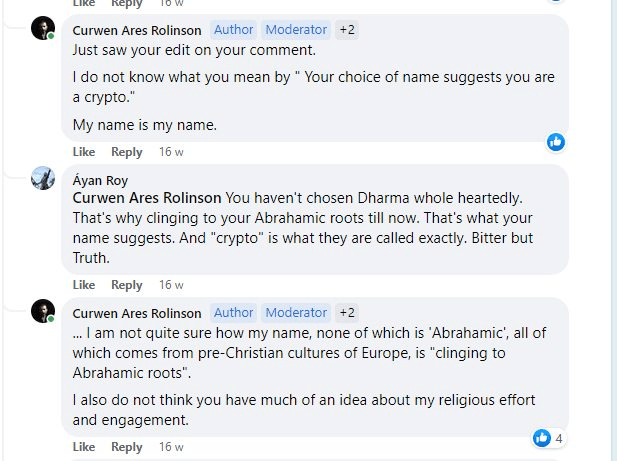 I got, as I say, conjured into the conversation and asked to weigh in upon this matter of the gentleman and his posting. I did so, initially, by asking various of his detractors to take a read of the actual lines in Sanskrit and asking how they would instead prefer to have it translated.
