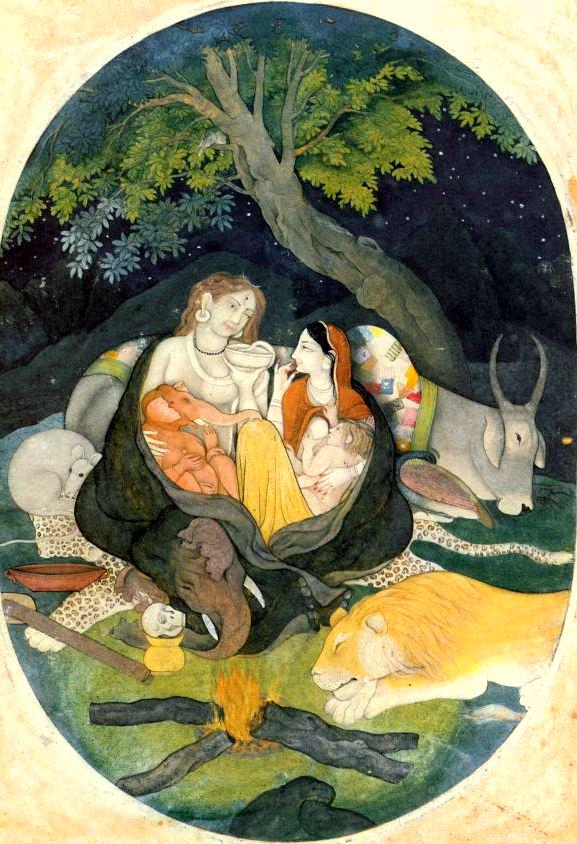 The sage Manasataramgini captioned it thusly: “Rudra’s clan all huddled in an elephant hide for the cold Himalayan night”.