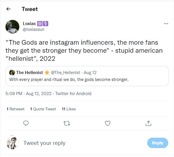 Besides, we of course do not disagree that Gods are not akin to ‘instagram influencers’.