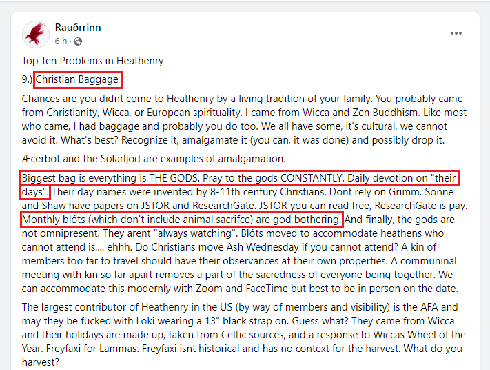 The post itself had been taking aim at “Christian Baggage” in Germanic revivalist adherents – and had singled out … well, we’ll quote for you:
