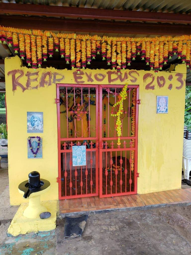 More infuriating was the repeated violation of the Shiv Mandir in Carapo four months ago. There, it appears the Temple was broken into twice in quick succession – with not only valuables and hardware taken (including adornments of the Murtis, cooking equipment (like, a stove, microwave, and gas cylinders), etc.) … but in what can only be a pointed act of deliberate desecration, a meal of corned beef was cooked up by the vandals in the Temple’s kitchen before being consumed inside the Temple itself.