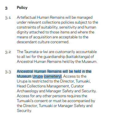 There’s an interesting dimension viz. the Auckland War Memorial Museum (our largest museum in this city), which houses an array of elements that are relevant here – both in terms of grave goods and also human remains, indeed ancestral human remains (to people still here today).