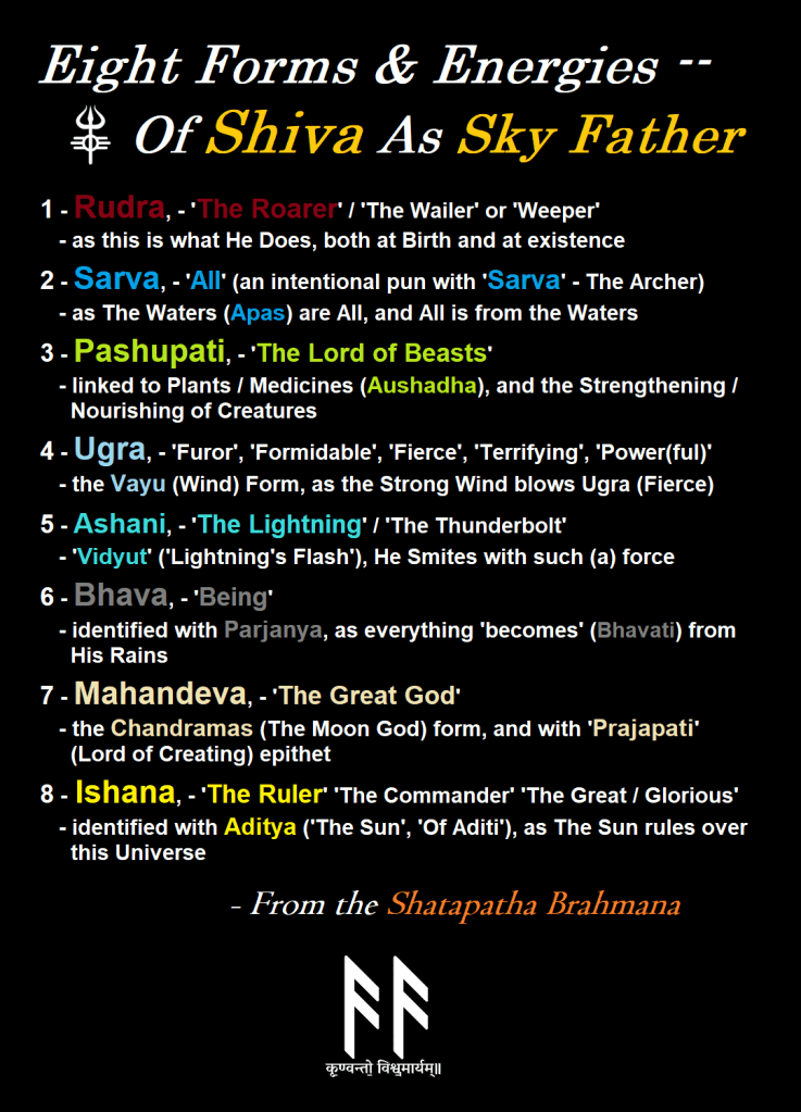 An interesting example might be if one were to consider the various ‘Elemental’ Facings to Rudra(-Agni)[SBr list of AshtaMurti provided for partial illustration].