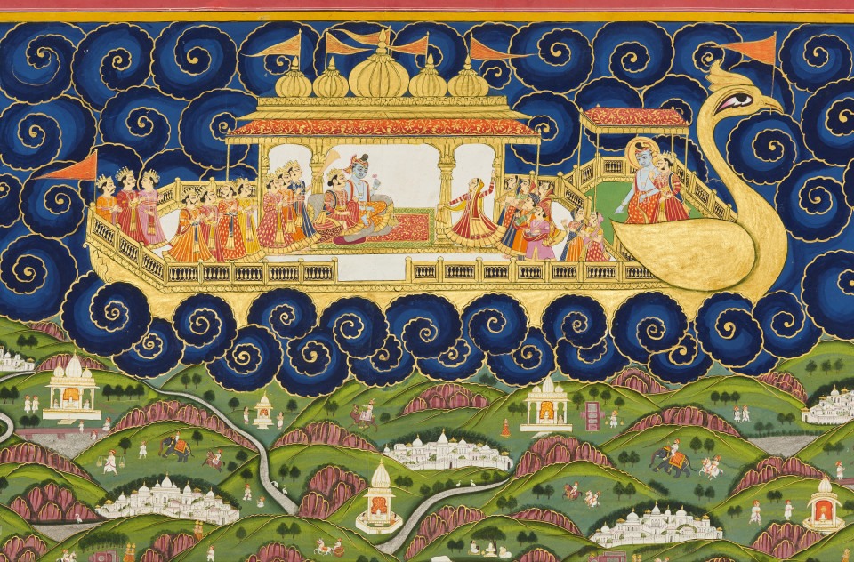 Although one also finds the space regarded as (bearing – or at the very least, heavily resembling – c.f. VS XXXVIII 7 which jointly invokes ‘Vāta’ as ‘Samudra’ & ‘Sarira’) a body of water in the more liquid sense – indeed seemingly traversable via boat (at least … of the right kind – the ‘Ritual Enclosure as Ship’ understanding springs instantly to mind; as does, with deference to both the colouration and apparent adjacent-elemental characterization for the space in question, that line from The Muppets’ Treasure Island: “Sailing For Adventure On The Big Blue Wet Thing”).
