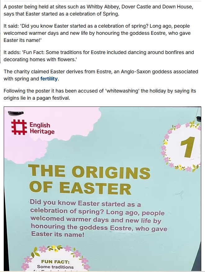 Always interesting what generates the “outrage”. This was from the Daily Mail ; article headline: “English Heritage sparks outrage after telling children Easter was not originally Christian”.