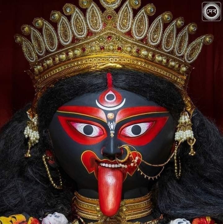 And, because it fairly instantly leaped into my head upon having this photo sent to me by Mum … here’s the Rev. Rolinson (who had assisted the spider in question upon its exit from the shower to the bushes outside) with his temporary hairpiece, along with the somewhat similar iconographic feature one finds in Bengali depictions of the Goddess (look between the Brows).