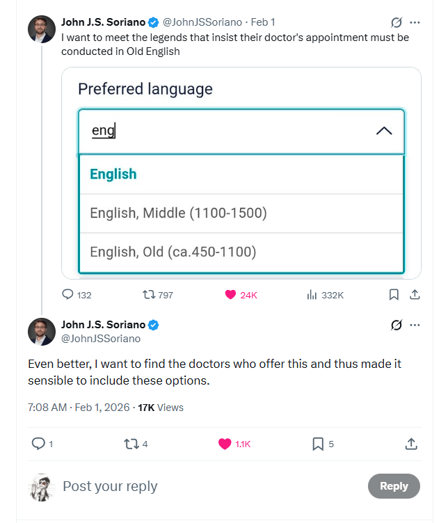 Whether this is done in ecclesiastical Sanskrit – or, as in the case of these apparent doctor’s appointments, Old English as well.